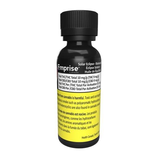 Buy SOLAR ECLIPSE BALANCED OIL Online. Emprise’s Solar Eclipse Balanced Oil is a 1:1 oil with 300mg of CBD and 300mg of THC per bottle. Manufactured using CBD & THC distillate and coconut-derived MCT oil. Includes 1ml oral syringe.